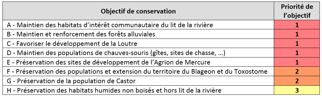 Ci-dessous, les objectifs de conservation préconisés par le DOCOB :